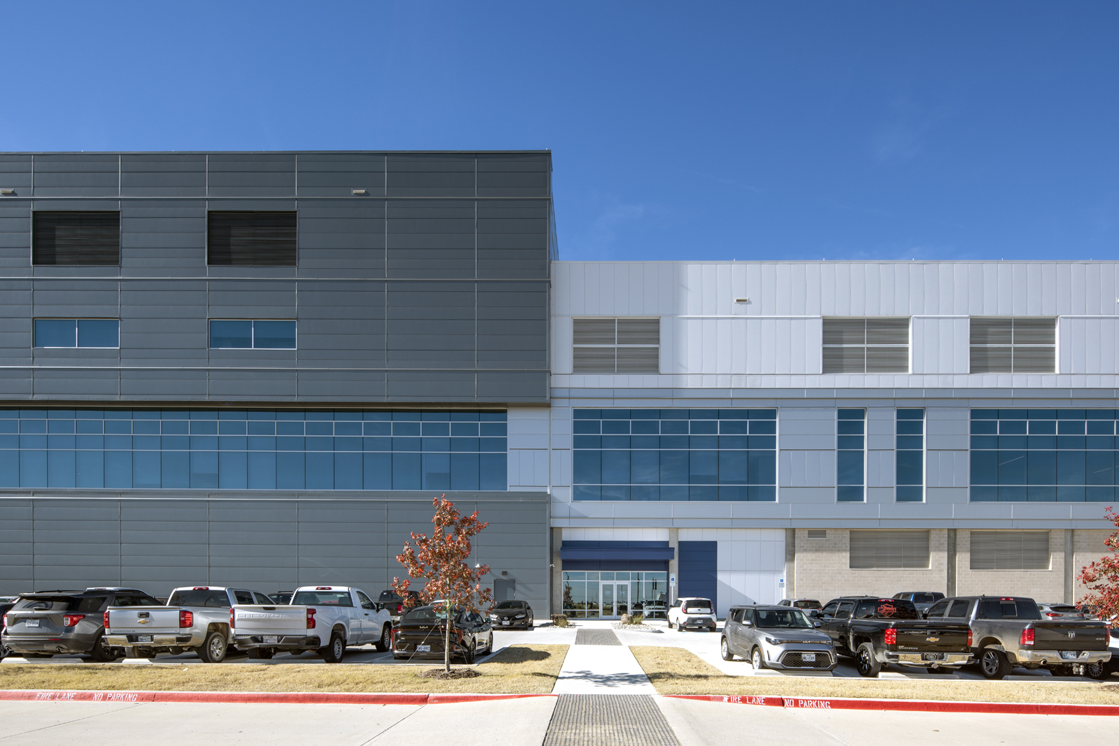 In addition to their thermal performance, the panels’ design flexibility allowed the creation of a striking façade that enhances the facility’s sleek, modern appearance. Subtle variations in color and texture highlight the entryway,