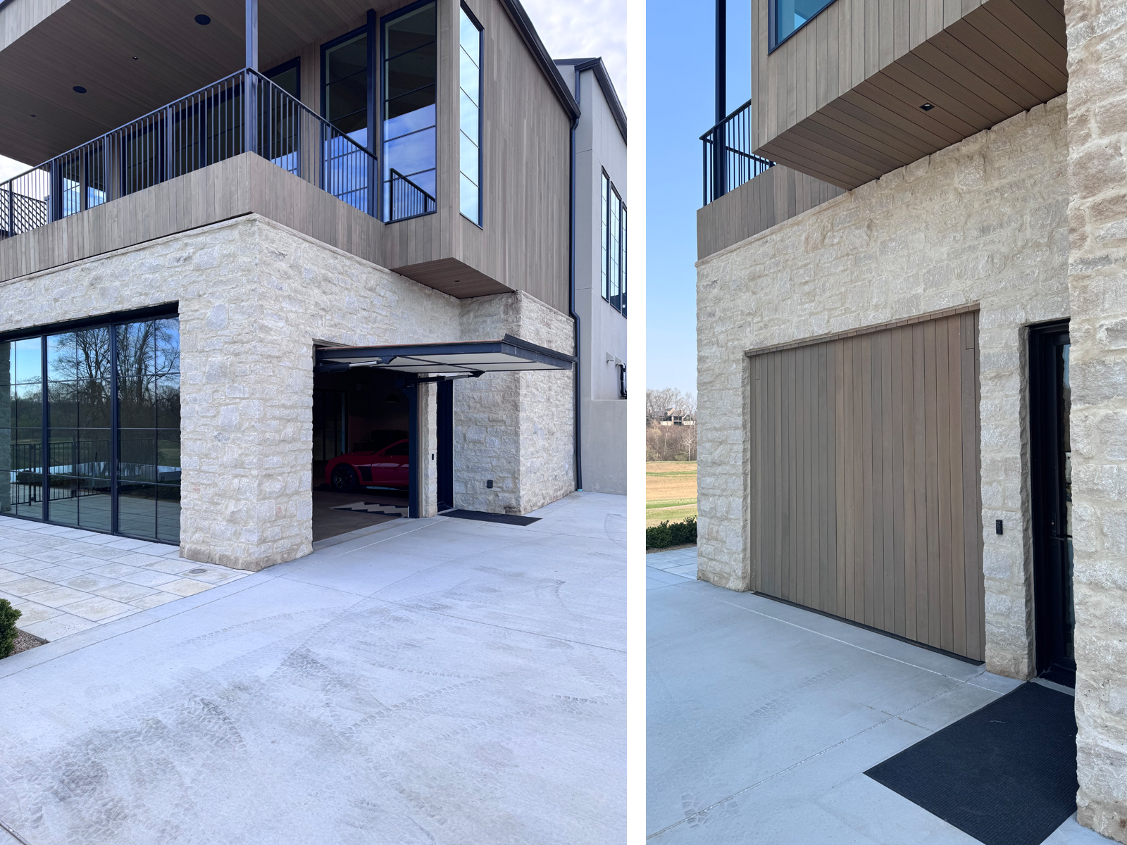 limestone and cedar. When opened, the single panel also creates an