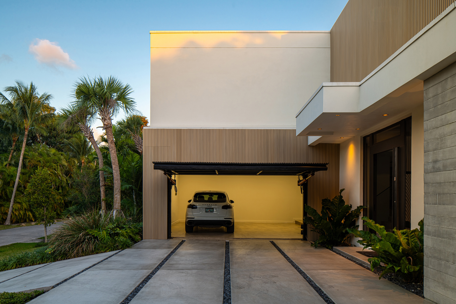 At first glance, it appears as though the luxury villa in Miami’s Belle Meade neighborhood has no garage. Then suddenly, with the push of a button, one of the walls begins to swing out and up, because the