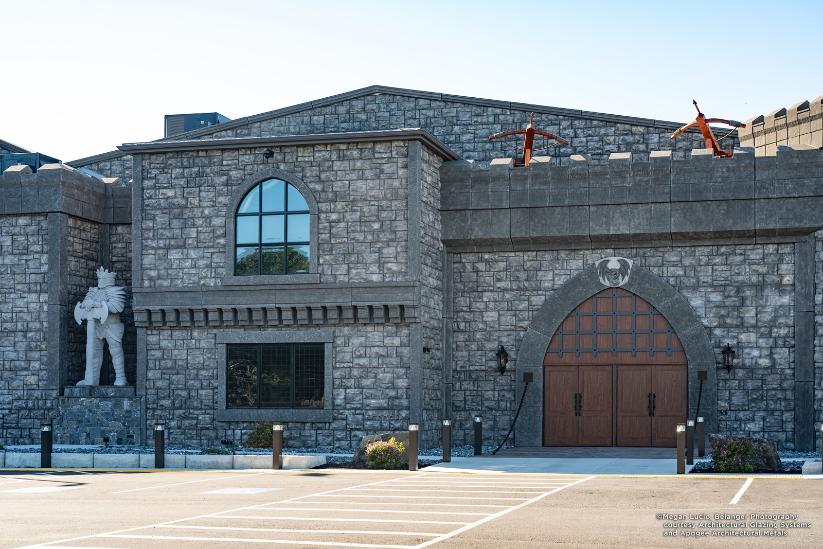 Swansea, Massachusetts greets guests with a grand entrance befitting the medieval-themed, 90,000-square-foot entertainment destination. The gothic-arched portcullis entry looks and feels like ancient, hearty timbers, but is made of modern, durable